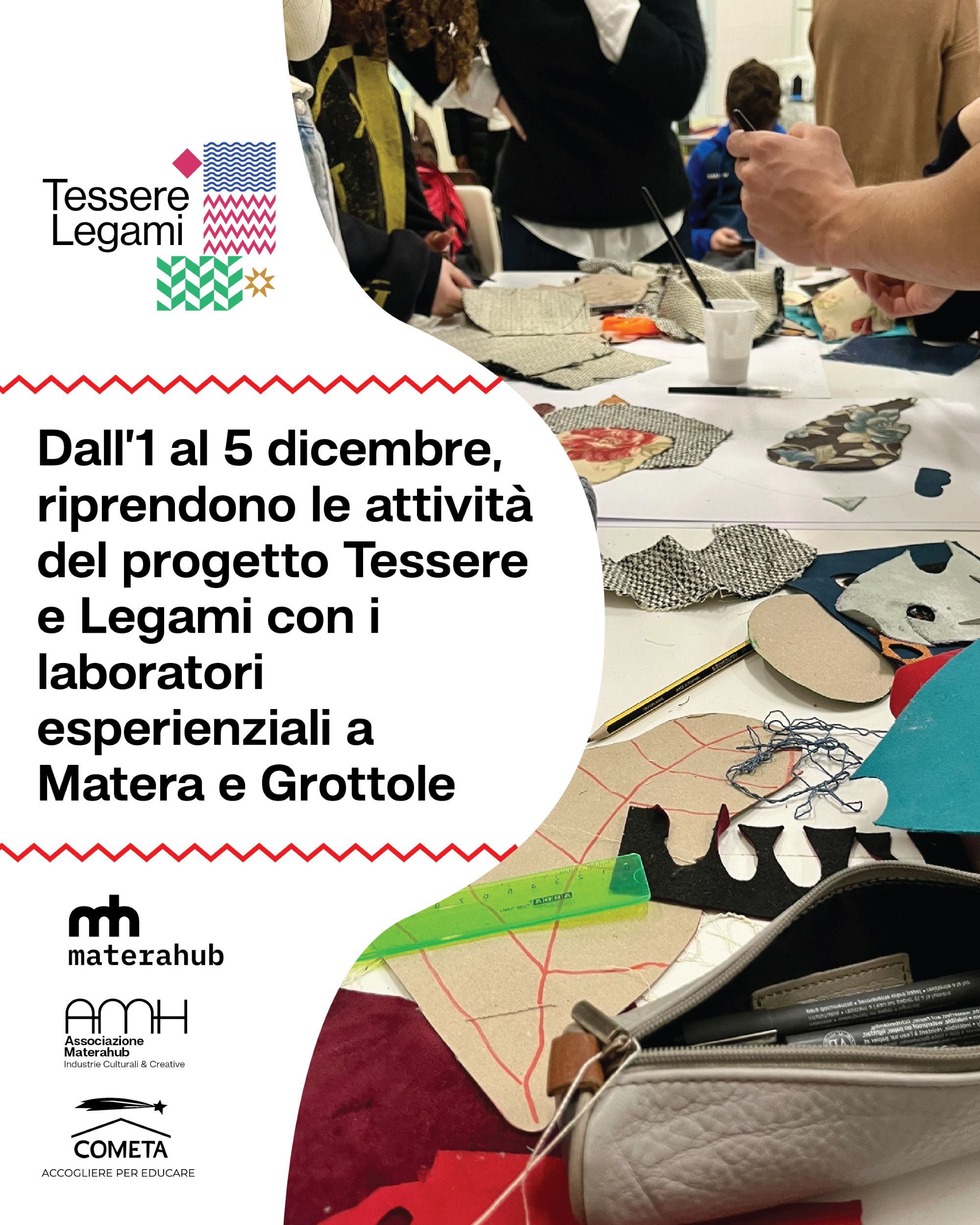 L’Associazione Materahub sostiene la cultura sussidiaria e la progettazione partecipata per valorizzare il patrimonio culturale, l’innovazione creativa e l’economia sostenibile. Attraverso coworking, crowdfunding e collaborazioni con enti pubblici e privati, favoriamo la nascita di nuove realtà culturali e professionali, promuovendo la cooperazione e lo sviluppo territoriale.